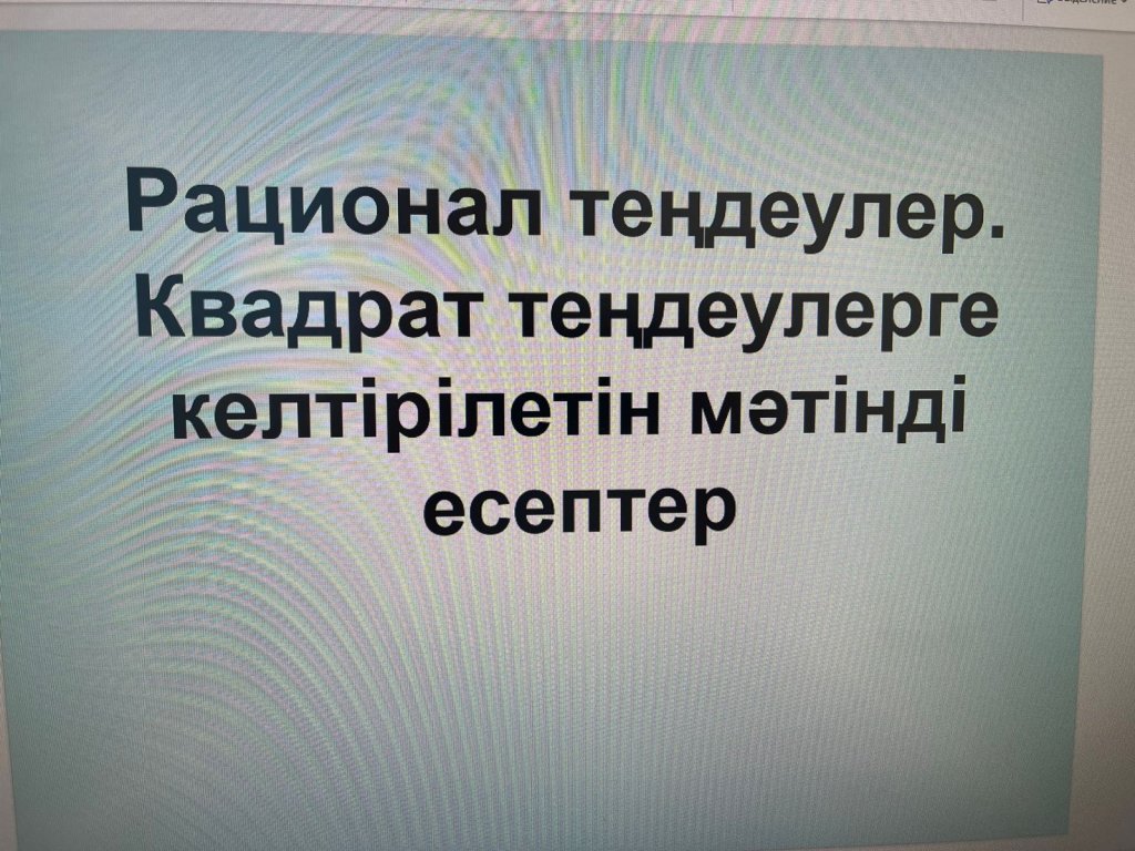 Бүгін, 15 желтоқсан күні, "Тірек мектебі" жобасы аясында 8-сынып оқушыларымен «Рационал теңдеулер. Квадрат теңдеулерге келтірілетін мәтінді есептер» тақырыбында сабақ өткізілді.