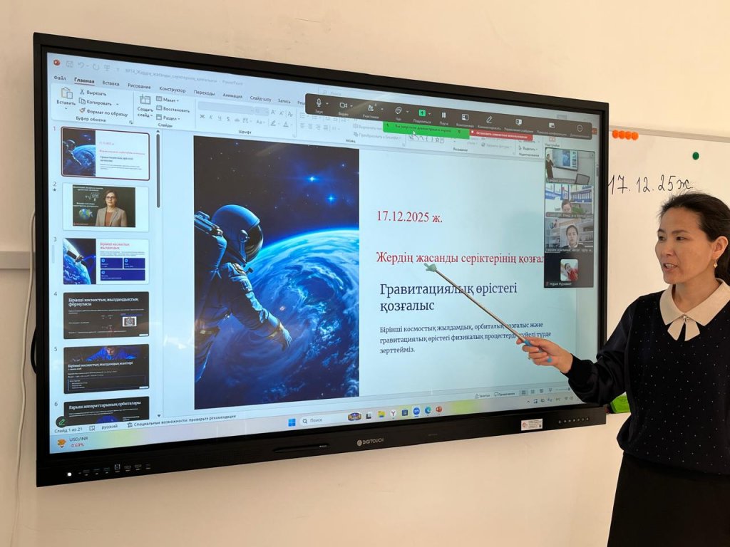9-сыныпта физика пәнінен "Жердің жасанды серіктерінің қозғалысы" тақырыбында онлайн сабақ өтті