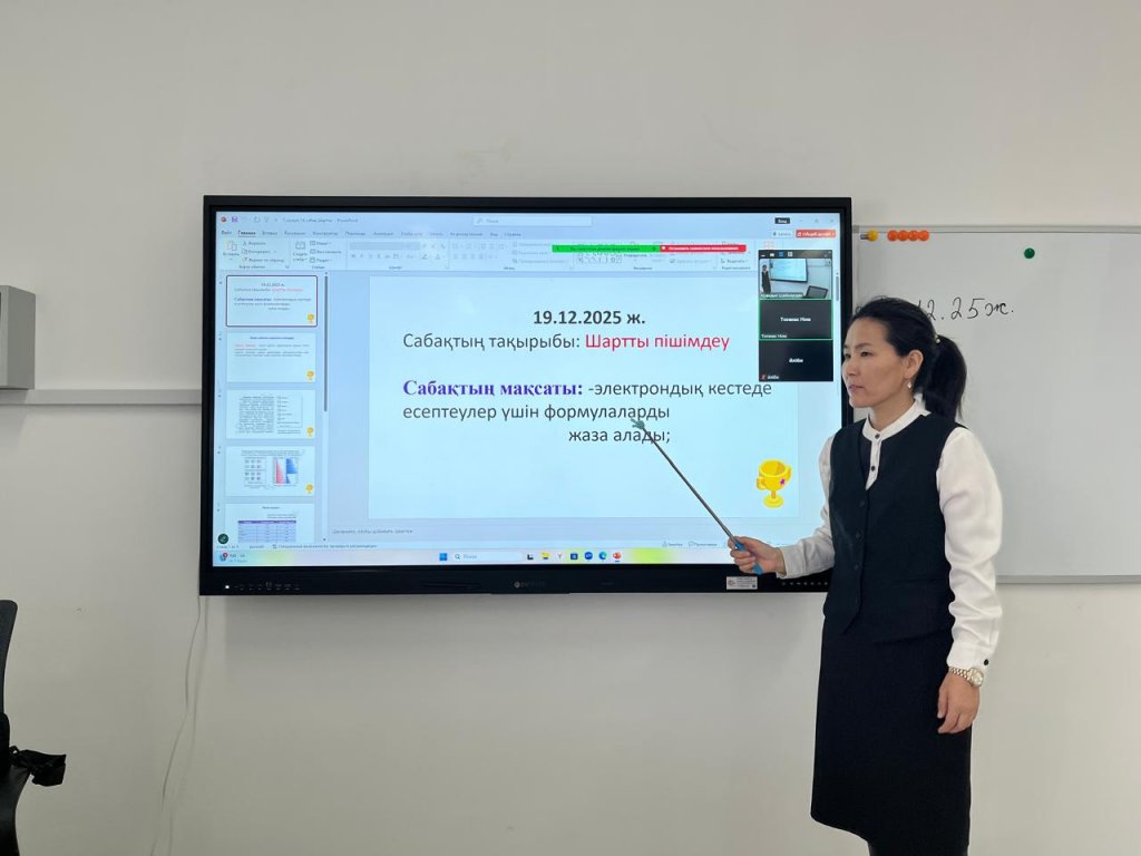Бүгін, 19 желтоқсан күні, "Тірек мектеп" жобасы аясында 7 -сыныпта информатика пәнінен «Шартты пішімдеу» тақырыбында онлайн сабақ өтті. Сабақты өткізген: пән мұғалімі — Шаймардан Х.