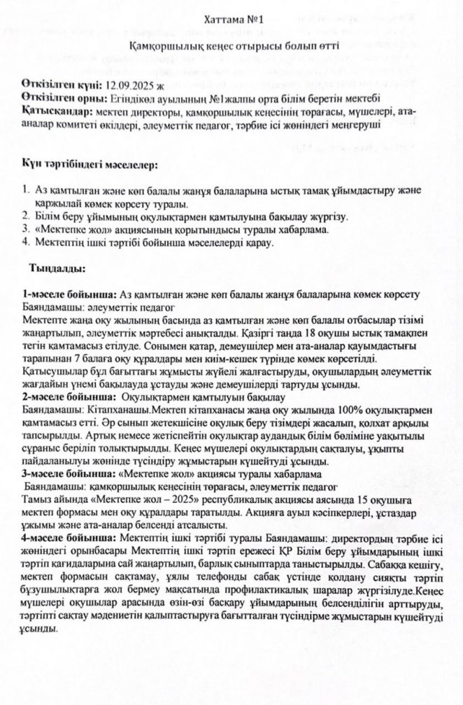 Коммунальное государственное учреждение "Общеобразовательная школа №1 села Егиндыколь отдела образования по Егиндыкольскому району управления образования Акмолинской области"