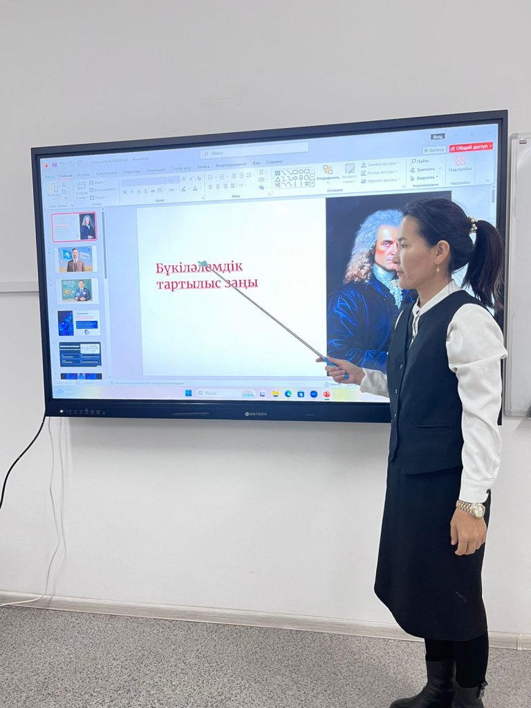 Сабақта презентация көрсетілді, ойын түрінде тапсырмалар орындалды, жасанды интеллект қолданылды.