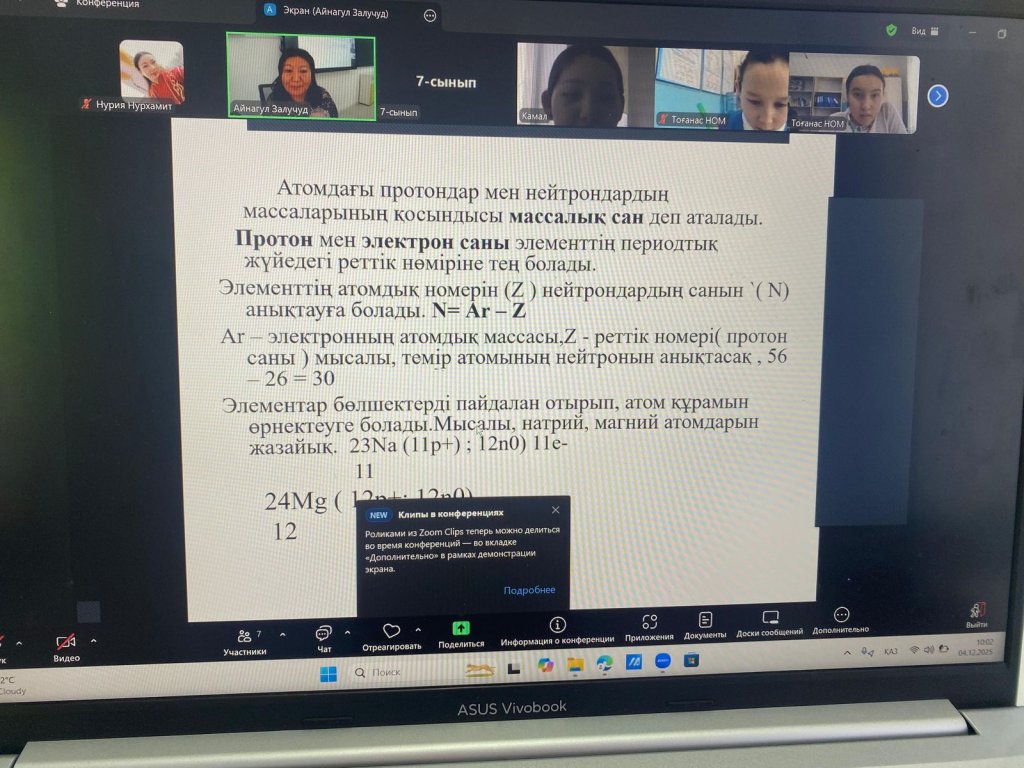Бүгін, 3 желтоқсан күні, «Тірек мектебі» жобасы шеңберінде 7-сынып оқушыларына алгебра пәнінен онлайн сабақ жүргізілді.