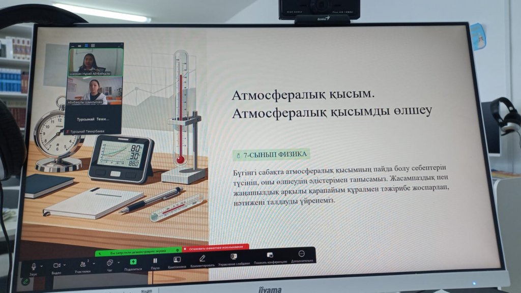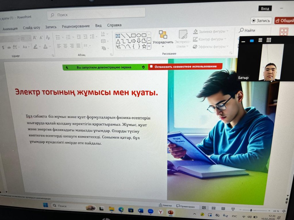 10 ақпан 2026 жылы 10 сыныпта физика пәнінен ""Электр тогының жұмысы мен қуаты" тақырыбында онлайн сабақ өтті. Сабақтың мақсаты: “Жұмыс және қуат формулаларын есептер шығаруда қолдану....