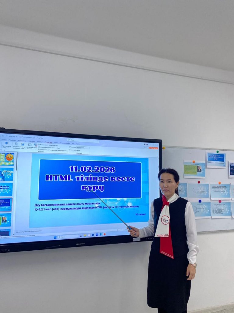 09-20.02.2026 аралығында "Жасанды интеллект дәуіріндегі МИФ" атты онкүндік аясында, 11-ақпан күні информатика пәнінен 10 сыныпта "HTML тілінде кесте құру” тақырыбында ашық сабақ өтті.