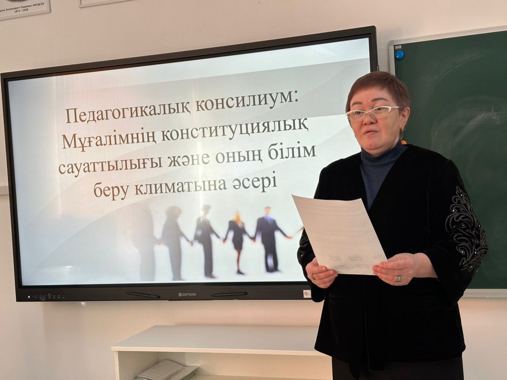 Бүгін 13 ақпан мектеп ұжымымен «Мұғалімнің конституциялық сауаттылығы және оның білім беру климатына әсері» тақырыбында педагогикалық консилиум өтті