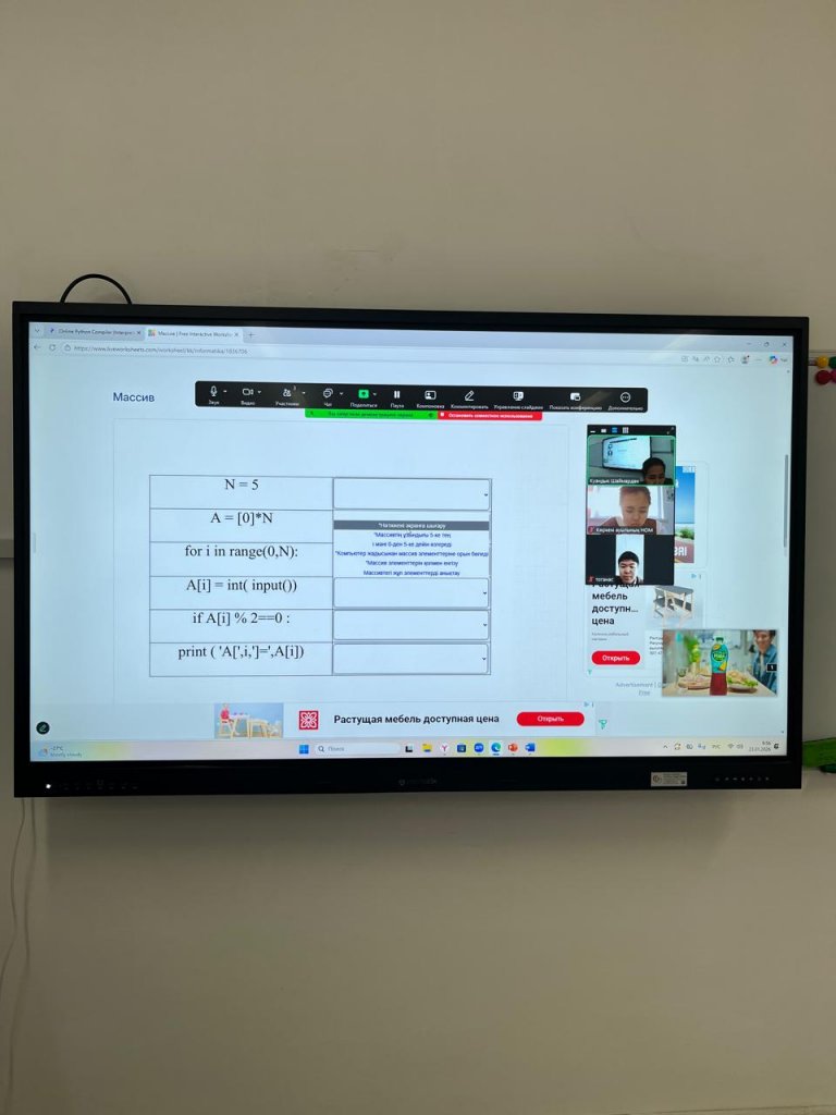 Ауыл мектебі - сапа алаңы” тірек мектебі жобасы аясында 7 сыныпта информатика пәнінен “Тармақталған алгоритмдерді программалау” тақырыбында онлайн сабақ өтті.
