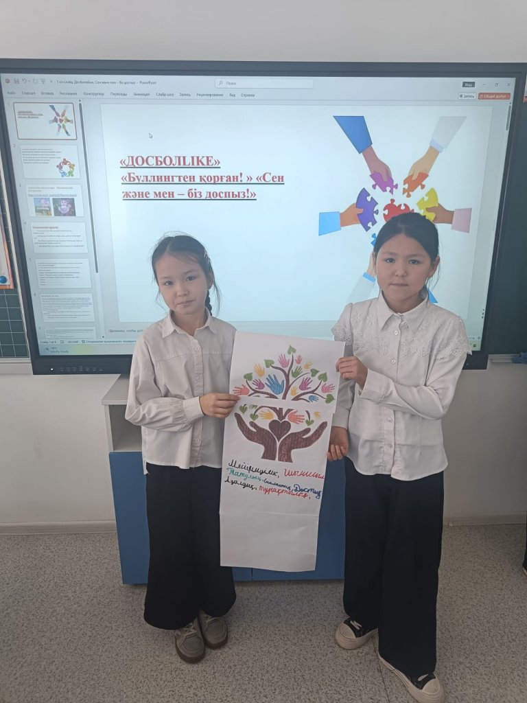 Бүгін 19.01.2026 күні 4-сыныпта оқушыларға буллингтің алдын алу жолдарын түсіндіру, бір-біріне құрметпен қарауға тәрбиелеу мақсатында "Мейірімді сөз ашуды жеңеді" тақырыбында сынып сағаты өтті.
