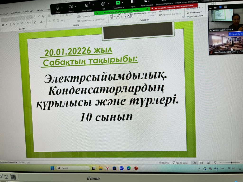 Бүгін, 20 қаңтар күні, "Тірек мектеп" жобасы аясында 10-сыныпта физика пәнінен "Электрсыйымдылық. Конденсатордың құрылысы мен түрлері" тақырыбында онлайн сабақ өтті. Сабақты өткізген: пән мұғалімі — Шаймардан Х.