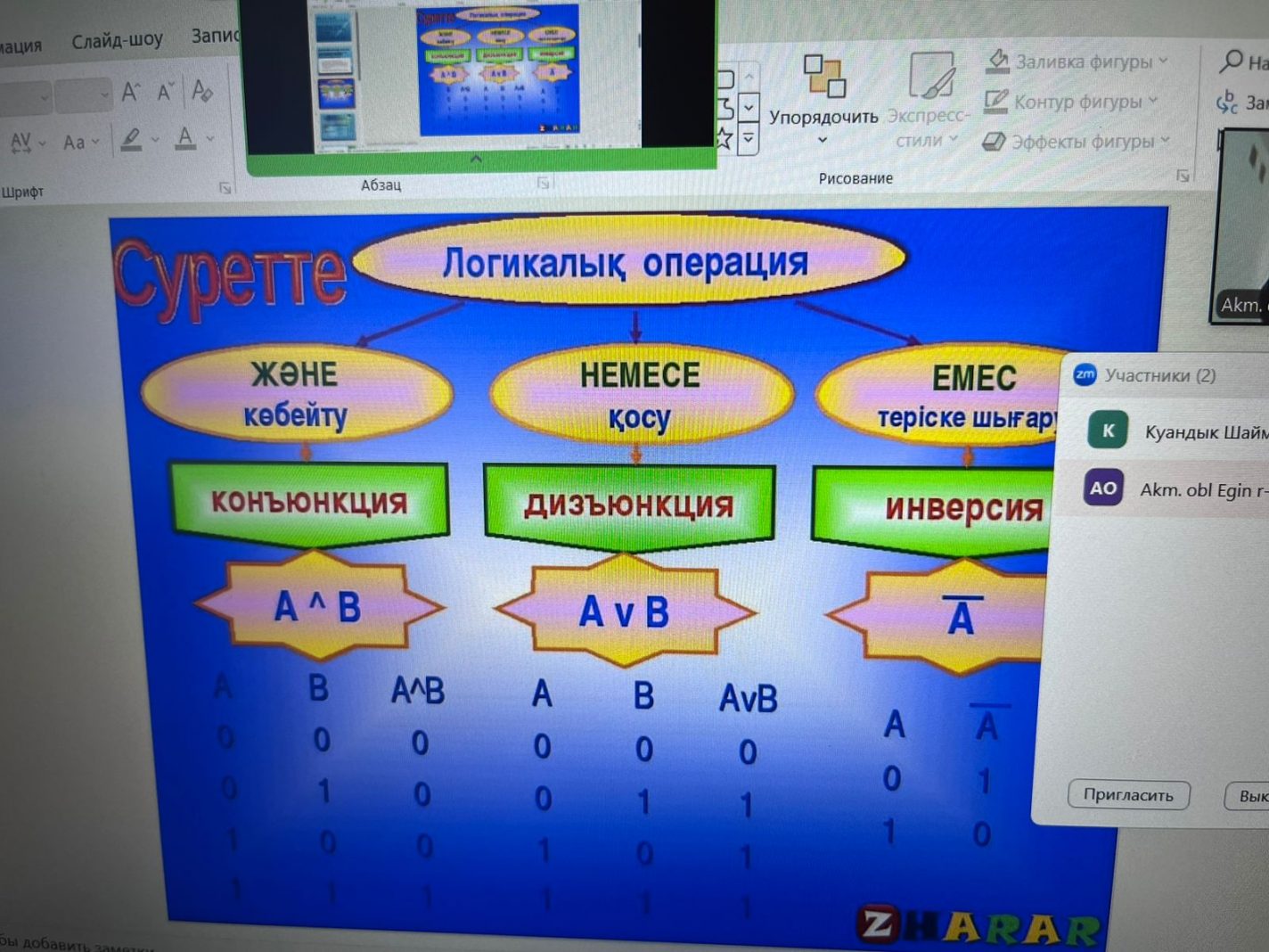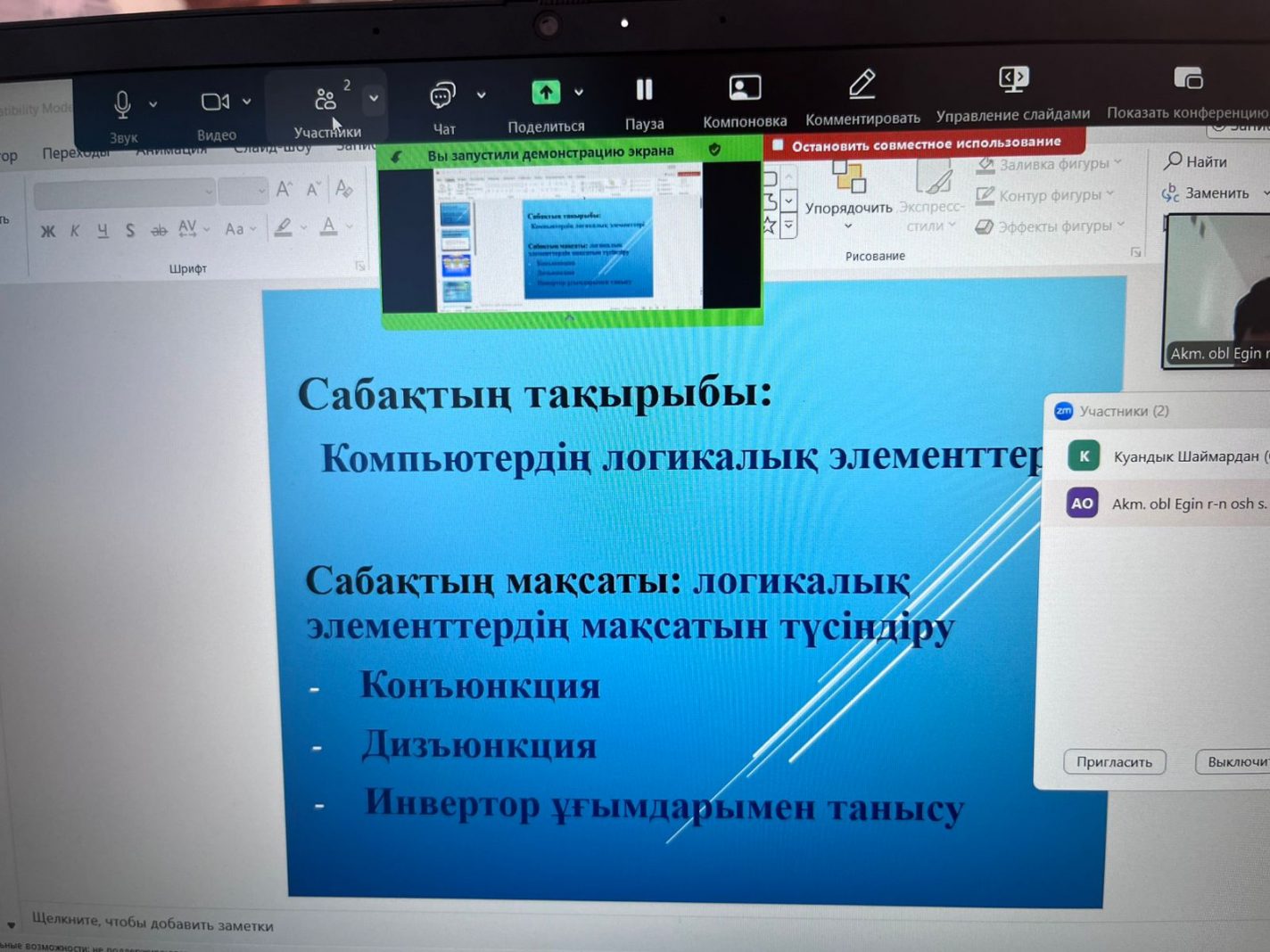 Бүгін, 21 қазан күні 10-сыныпта информатика пәнінен «Компьютердің логикалық элементтері» тақырыбында онлайн сабақ өтті. Сабақты өткізген: пән мұғалімі — Шаймардан Хуандых.