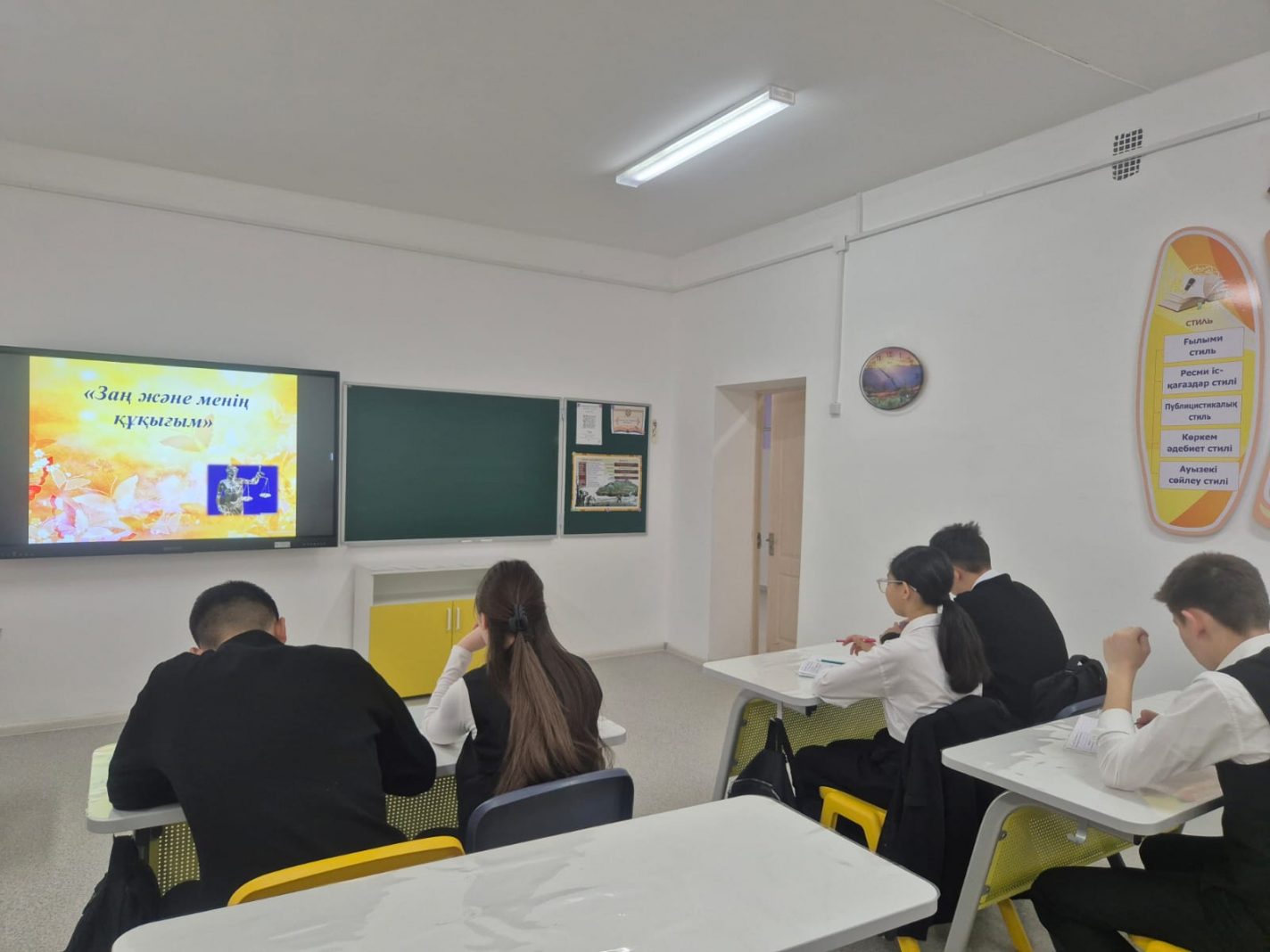 24.11.2025 ж. 10 сыныпта "Заң және менің құқығым" тақырыбында сынып сағаты өтті.