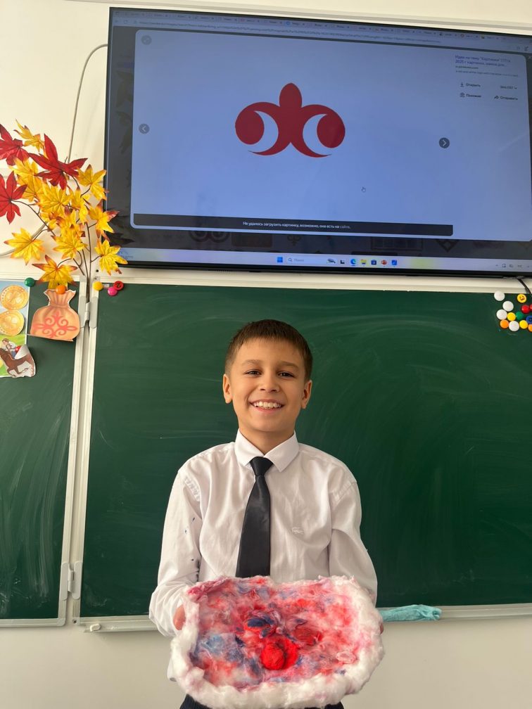 Әрбір оқушы өз қолымен кілемге ұқсас, бірегей композицияны мұқият құрастырды. Бұл сабақ балалардың ұсақ моторикасын, шығармашылық қиялын дамытып қана қоймай, оларды қазақ халқының қолөнер мәдениетімен таныстырды. Балалар өз жұмыстарына үлкен ынта-жігермен кірісті, нәтижесінде түрлі-түсті және көрнекті туындылар дүниеге келді!