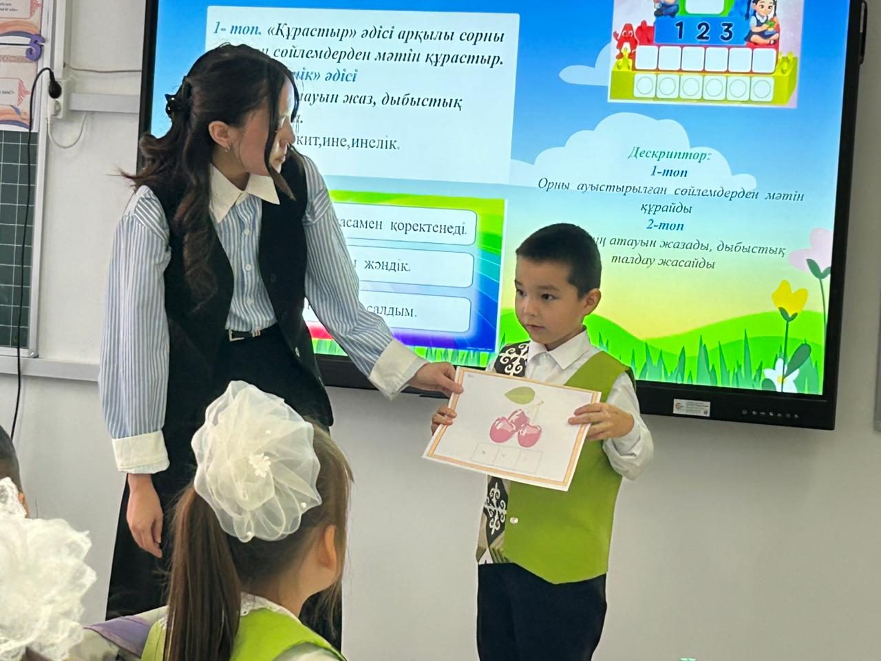 Балалар интерактивті әдістер арқылы ойлау дағдыларын дамытып, сабаққа зор қызығушылықпен қатысты.