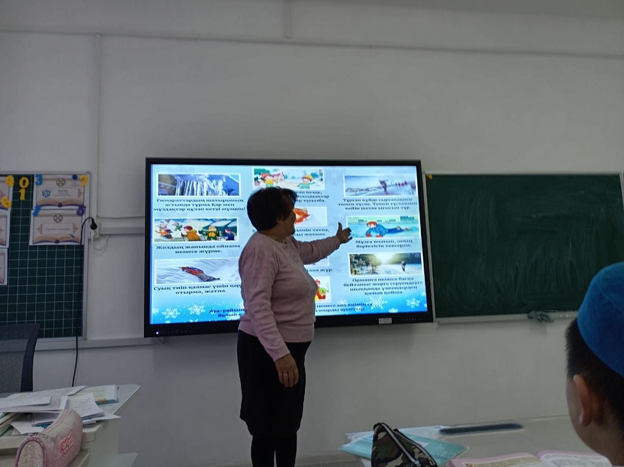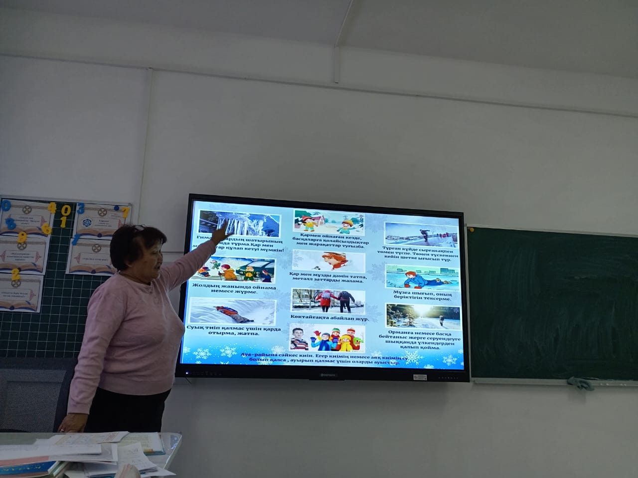 08.12.2025ж. күні 2 ә сынып оқушыларымен Мұз үстіндегі қауіпсіздік ережесімен таныстырып, қолдарына қауіпсіз ережелері таратылды.