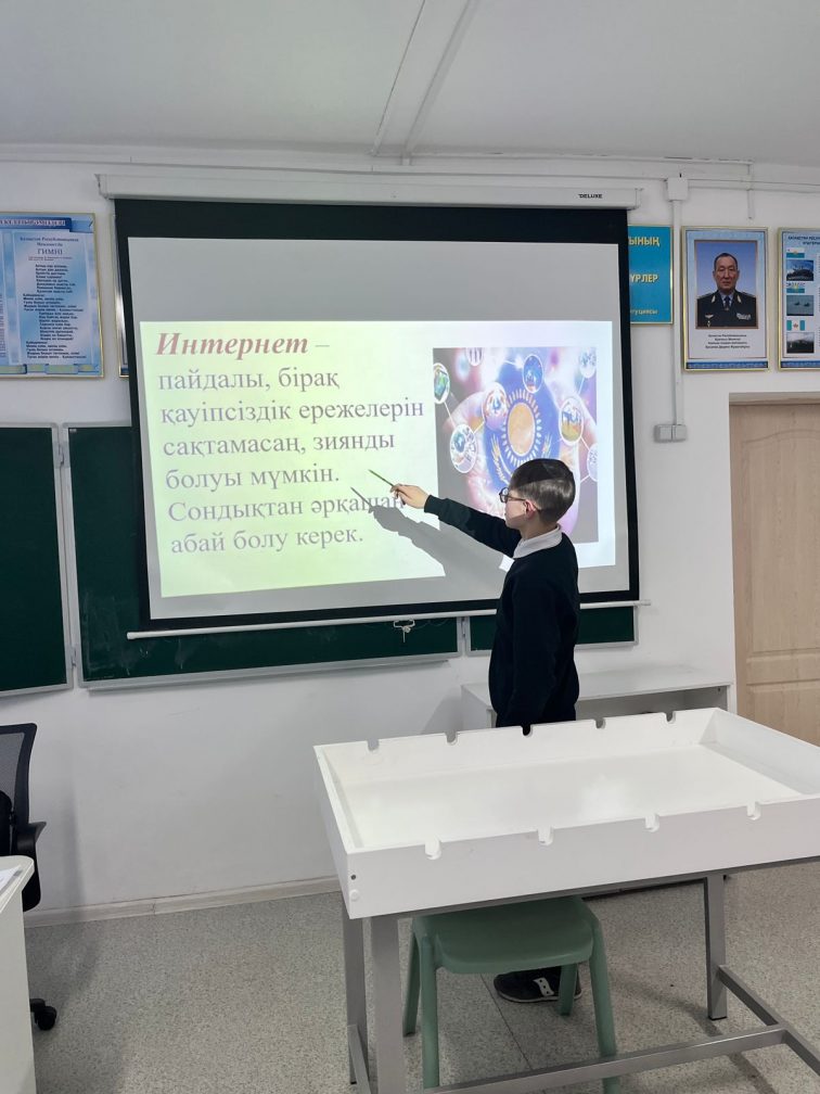 "4-ақпан- Дүниежүзілік қауіпсіз интернет күні", "Цифрлық әлемдегі қауіпсіз қадам" тақырыбында сынып сағаты және "Кәмелетке толмағандардың құқықтық жауапкершілігі қай жастан басталады?" тақырыбында қауіпсіздік сабағы өткізілді.