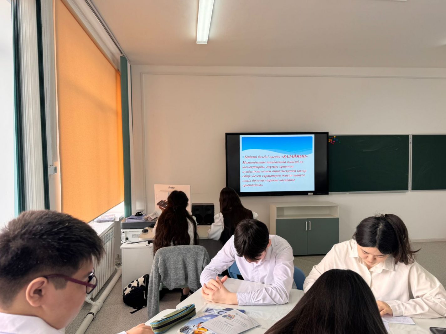 13.01.2026 күні 9 «А» сыныбында «Мамандық таңдау – маңызды шешім» атты тәрбие сағаты өтті.Мақсаты:Оқушыларға мамандық таңдаудың маңыздылығын түсіндіру, әр мамандықтың ерекшеліктері туралы мәлімет беру, оқушылардың өз қабілеті мен қызығушылығына сай болашақ мамандығын саналы түрде таңдауға бағыт беру. Сонымен қатар еңбекқорлыққа, жауапкершілікке тәрбиелеу және кәсіби бағдар беру.
