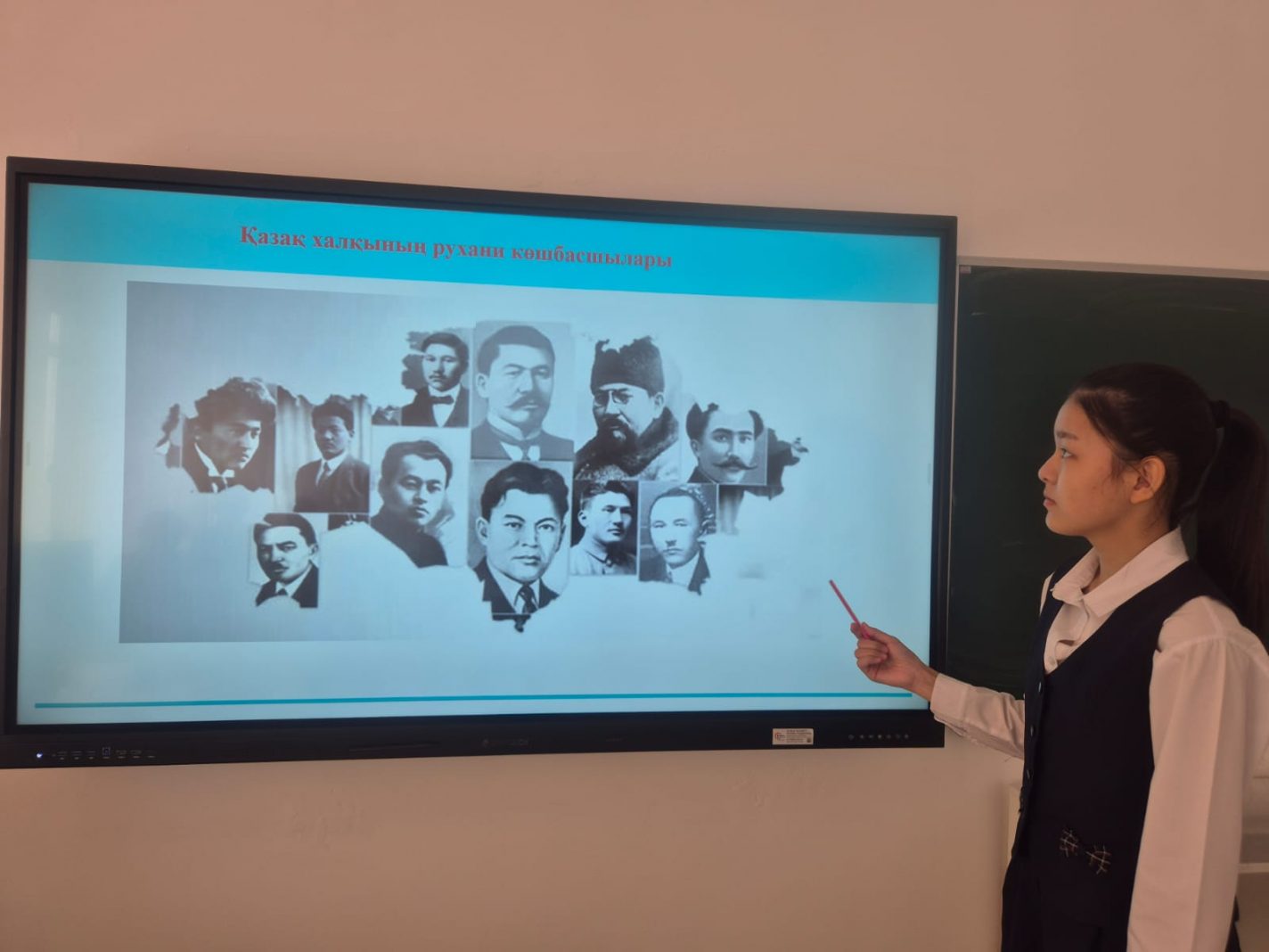 14 сәуір – шығармашылық күні аясында мектебімізде 10-сынып оқушыларымен «Қазақ халқының рухани көшбасшылары» тақырыбында танымдық сабақ жоғары деңгейде өтті. Бұл іс-шара Ұлттық кітап күніне орай ұйымдастырылған «Балалар әдебиеті – рухани тәрбие бастауы» атты онкүндік шеңберінде өткізілді. Сабақ барысында оқушылар қазақ халқының рухани дамуына зор үлес қосқан ұлы тұлғалардың өмірі мен еңбектеріне терең үңіліп, олардың өнегелі жолынан тағылым алды. Әдебиет арқылы ұлттық құндылықтарды дәріптеу, кітаптың адам өміріндегі маңызын түсіну – сабақтың басты мақсаты болды. Оқушылар өз ойларын еркін білдіріп, шығармашылық қабілеттерін көрсетіп, пікір алмасу арқылы рухани байлықтарын арттырды. Мұндай тағылымы мол іс-шаралар жас ұрпақтың саналы, білімді әрі ұлттық рухы биік азамат болып қалыптасуына үлкен ықпал етеді. 📖 Кітап – рухани қазына, ал оны қадірлеу – әрбіріміздің парызымыз! ✨ Руханият жолындағы игі істер жалғасын таба бермек!
