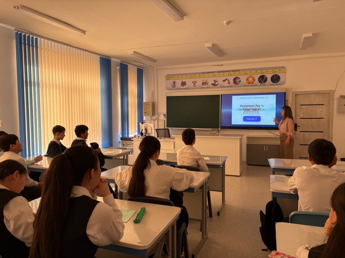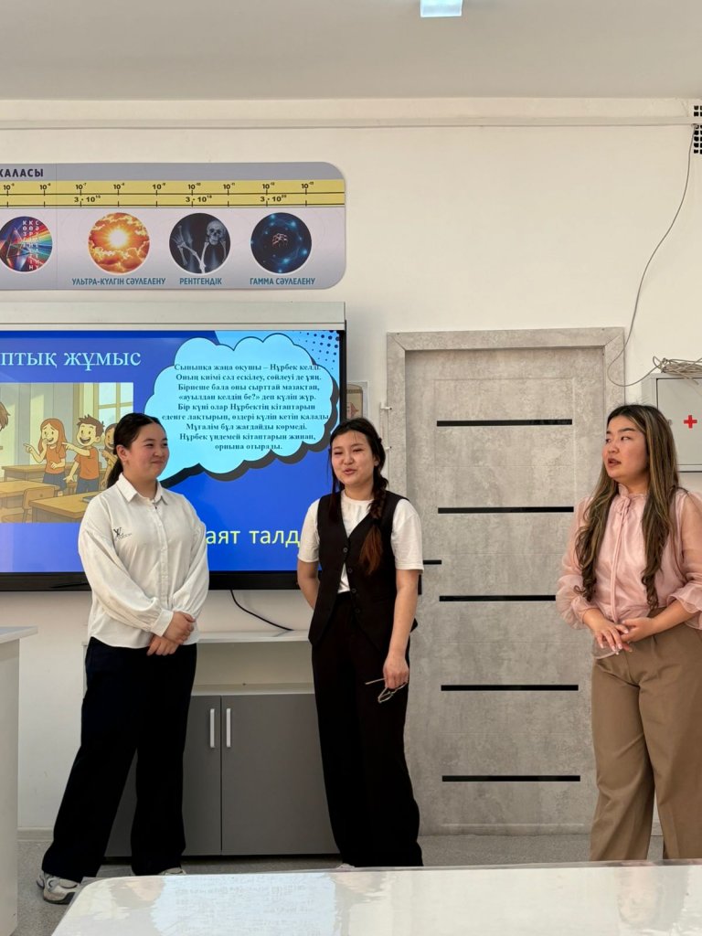 Жас мамандар апталығы аясында 8-сынып оқушыларымен 📚 «ДОСБОЛLIKE», «Буллингтен қорған!», 🤝 «Біріккенде біз күштіміз!» тақырыптарында және 📵 Қауіпсіздік сабағы №30 (10 минут) – «Абайлаңыз – селфи!» атты ашық сынып сағаты өткізілді. ✨ Сабақтың мақсаты: 👥 Оқушыларға достық, өзара сыйластық және бірлік құндылықтарын түсіндіру, жағымды қарым-қатынас қалыптастыру. 🚫 Буллингтің зияны туралы түсінік беріп, оның алдын алу және қорғану жолдарын үйрету. 🤝 «Біріккенде біз күштіміз!» қағидасы арқылы ынтымақтастық пен қолдау көрсету дағдыларын дамыту. 📵 «Абайлаңыз – селфи!» тақырыбы аясында қауіпсіздік ережелерін түсіндіру, қауіпті жағдайлардан сақтандыру. 💡 Оқушыларды жауапкершілікке, саналы шешім қабылдауға және өз өмірі мен денсаулығын бағалай білуге тәрбиелеу. 🌟 Сынып жетекшісі:Темирбаева Т.Т.