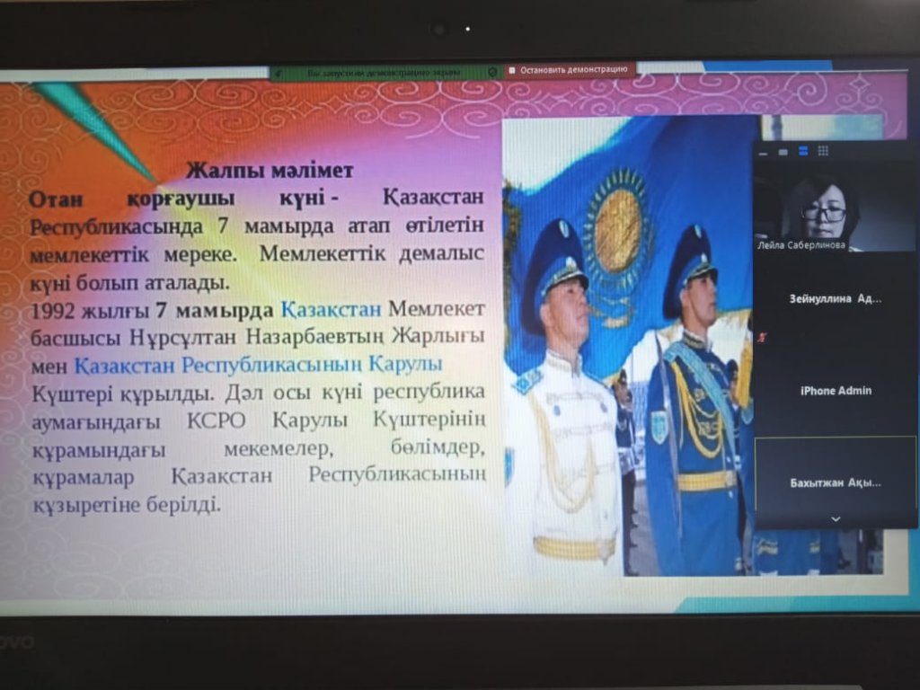 Бүгін, 4 мамыр күні 10 сыныпта Отан қорғаушылар күніне арналған "Ұланымыз ұлы елдің" атты сынып сағаты өтті. Сынып жетекшісі: Саберлинова Л. С.